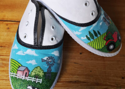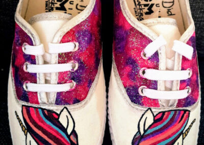 Contact Lu today and start your custom design journey. Whether you’re into bold colours, subtle symbolism, or detailed portraits, your dream pair of shoes is just a paintbrush away.